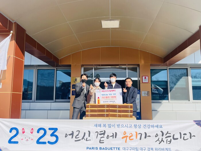 이번 기부는 ‘2023 어르신 곁에 우리가 있습니다’라는 슬로건으로 지역 내 어르신들께 따뜻한 정을 나누고자 기부행사를 가졌으며, 이번에 기부받은 카스텔라는 관내 제과점을 이용하기 어려운 저소득 취약계층에게 배부할 예정이다.