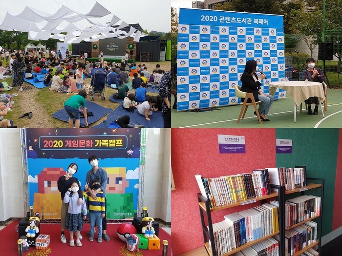 ▲콘진원은 기관 특성을 살려 콘텐츠를 활용한 다양한 지역사회공헌 활동을 전개했으며, 지난달 30일(월) 보건복지부와 한국사회복지협의회가 주관하는 ‘2020 지역사회공헌 인정제’ 인정기관으로 선정됐다.(왼쪽 위부터 시계방향 순, ▲국산 애니메이션 지역 상영회 ▲콘텐츠도서관 북페어 ▲콘텐츠 장서기증 ▲게임문화 가족캠프 전라권 개최 등 지역사회공헌 활동사진)/콘진원 제공 |