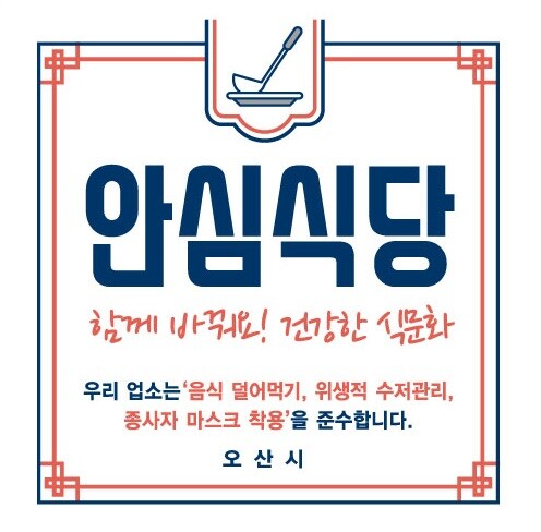 [로컬세계=김병민 기자] 경기 오산시는 위생적이고 안전한 식사문화 보급 확산과 더불어 시민들이 안심하고 식당을 이용할 수 있도록 생활 방역 3대 실천 과제를 준수하는 식당을 ‘안심식당’으로 지정해 운영할 계획이라고 26일 밝혔다.