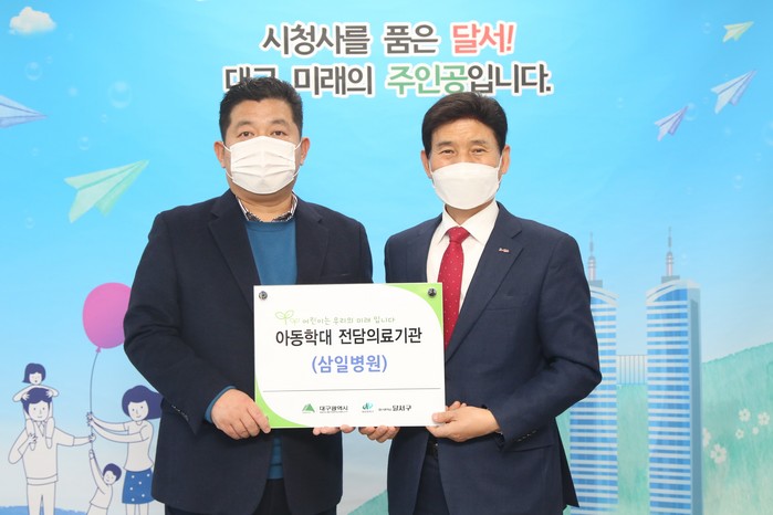 [로컬세계 박세환 기자]대구 달서구은 지난 12일 학대피해아동을 조기에 발견하고 보다 신속하게 치료할 수 있도록 아동학대 전담의료기관으로 삼일병원(병원장 김지건)을 지정하고 전담의료기관 선정 지정서를 전달했다고 14일 밝혔다.