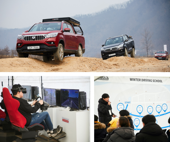 드라이빙 교육에는 신차 렉스턴 스포츠 칸을 비롯한 쌍용차의 프레임 기반 오프로더 모델들을 활용해 드라이빙 시뮬레이터 이용 등 다양한 환경에서의 주행 실력 향상을 도왔다.