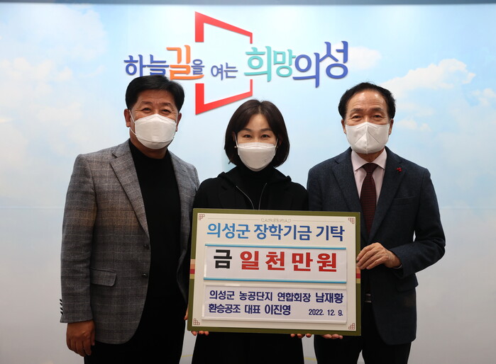 [로컬세계=박상진 기자]경북 의성군은 ㈜환승공조 이진영 대표, 의성농공단지연합회 남재황 회장 부부가 지난 9일 의성군인재육성재단(이사장 김주수 의성군수)을 방문해 지역인재 육성을 위해 작년에 이어 올해에도 장학금 1,000만원을 기탁했다고 14일 밝혔다.