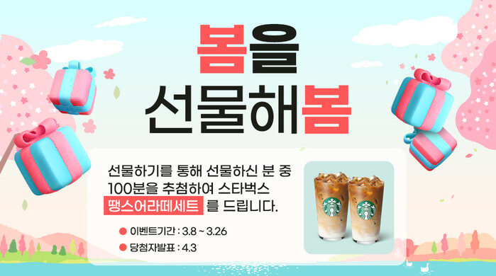 이 밖에도 수협쇼핑은 선물하기 기능을 이용하여 상품을 구매한 고객 100명에게 스타벅스 커피쿠폰을 증정하는 ‘봄을 선물해봄’ 이벤트를 오는 26일까지 진행 중이다.