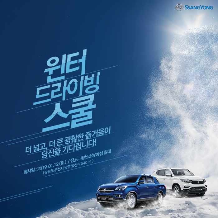 ‘2019 윈터 드라이빙 스쿨’ 참가 희망자는 오는 1월 2일까지 쌍용차 공식 페이스북에서 소정의 양식을 작성하면 된다.