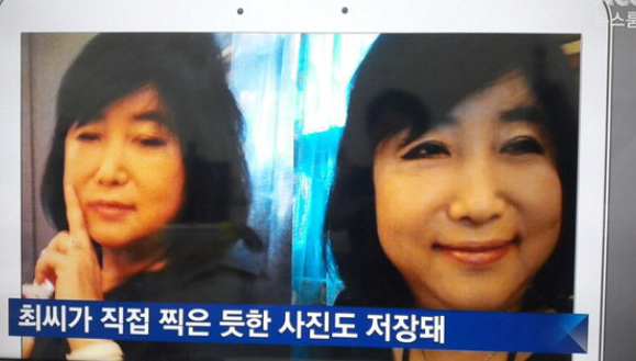 ▲최순실씨가 사용한 것으로 알려진 태블릿 PC에서 발견된 최씨의 셀카 사진. 사진은 JTBC 방송화면 캡쳐. |