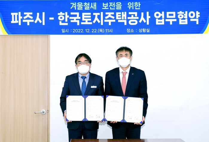 [로컬세계 = 이영원 기자]경기 파주시는 지난 22일 한국토지주택공사와 겨울철새 보전협력 방안에 대한 업무협약을 체결했다고 23일 밝혔다.
