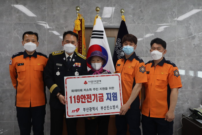 [로컬세계 맹화찬 기자]부산진소방서(서장 최대붕)에서는 6일 오전 주택화재로 생활터전을 잃은 화재피해 주민을 위로하고자 ‘119 안전기금’을 전달하는 행사를 실시했다고 밝혔다.