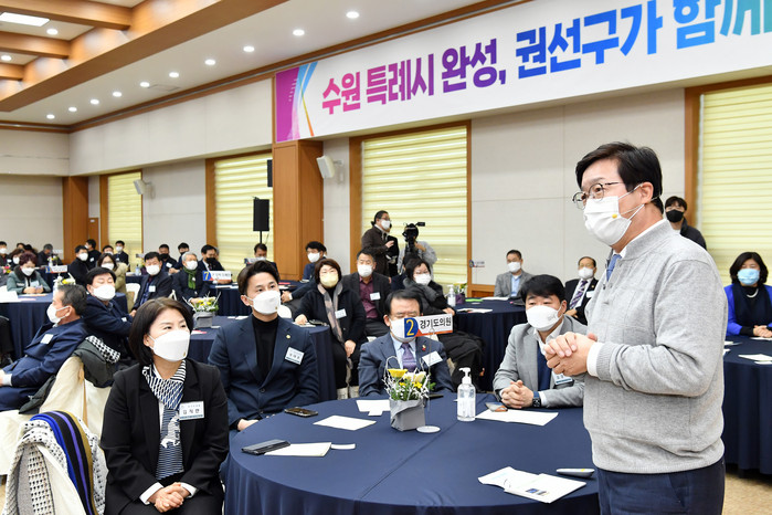 염태영 시장은 4일 장안구민회관, 권선구청 대회의실에서 잇달아 열린 ‘시민과 함께하는 2022년 열린대화(장안구·권선구)’에서 “수원시는 인구 100만 명이 넘는 대도시인데, 그동안 ‘중소도시’로 분류돼 시민들이 불이익을 받았다”며 “특례시 출범은 불합리한 제도로 인해 받았던 차별을 하나하나 해결해 나가는 계기가 될 것”이라고 내다봤다.