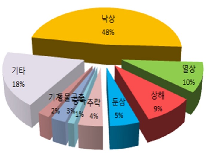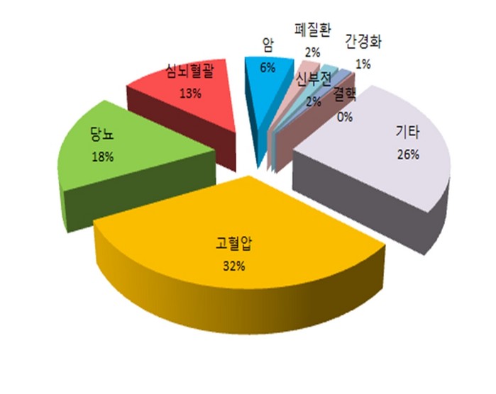 실제 이송 인원 41만8515명의 구급원인을 살펴보면 사고부상이 10만1879건으로 가장 많았으며, 고혈압 9만4천753건, 당뇨 5만2311건, 교통사고 5만892건 순으로 나타났다. 사고는 낙상이 48%, 열상(피부가 찢어져 생긴 상처)10.1%, 상해 8.8%순으로 많았으며, 교통사고는 운전자(28.2%), 동승자(24.6%), 보행자(17.7%)순으로 나타났다. 질병별로는 고혈압과 당뇨에 이어 심·뇌혈관질환이 세 번째로 많은 3만9138건이었다.