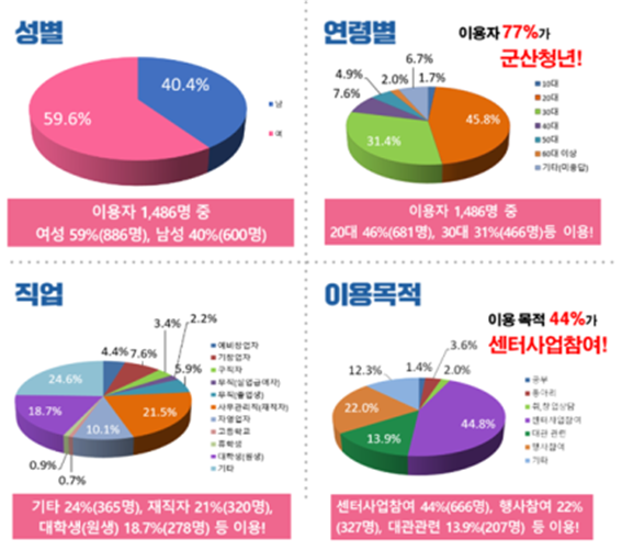 ▲2019년12월 31일 기준. 군산시 청년뜰 이용자 현황 통계 결과 분석. |