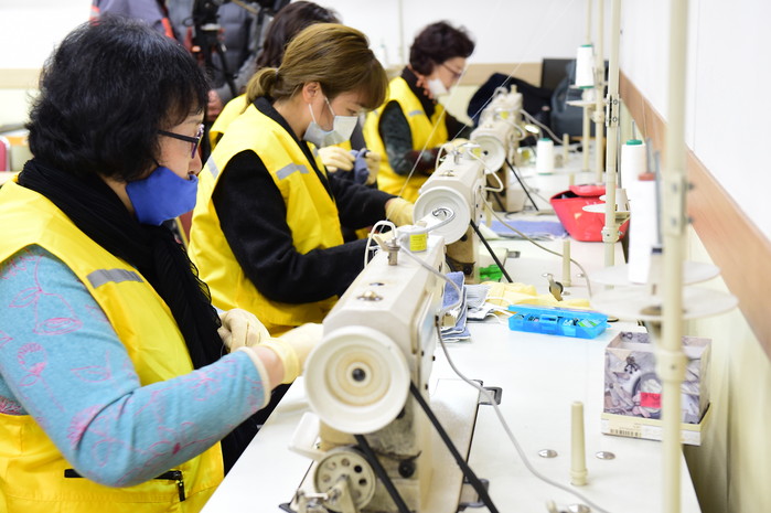 | ▲천마스크를 제작하는 자원봉사자들. |