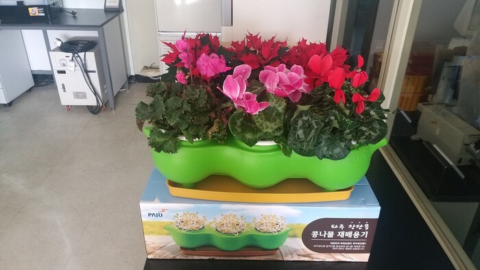콩나물 재배용기는 콩나물 재배는 물론 녹두, 보리 등 싹채소도 재배 가능하며, 꽃도 키울 수 있는 다기능의 재배용기다.