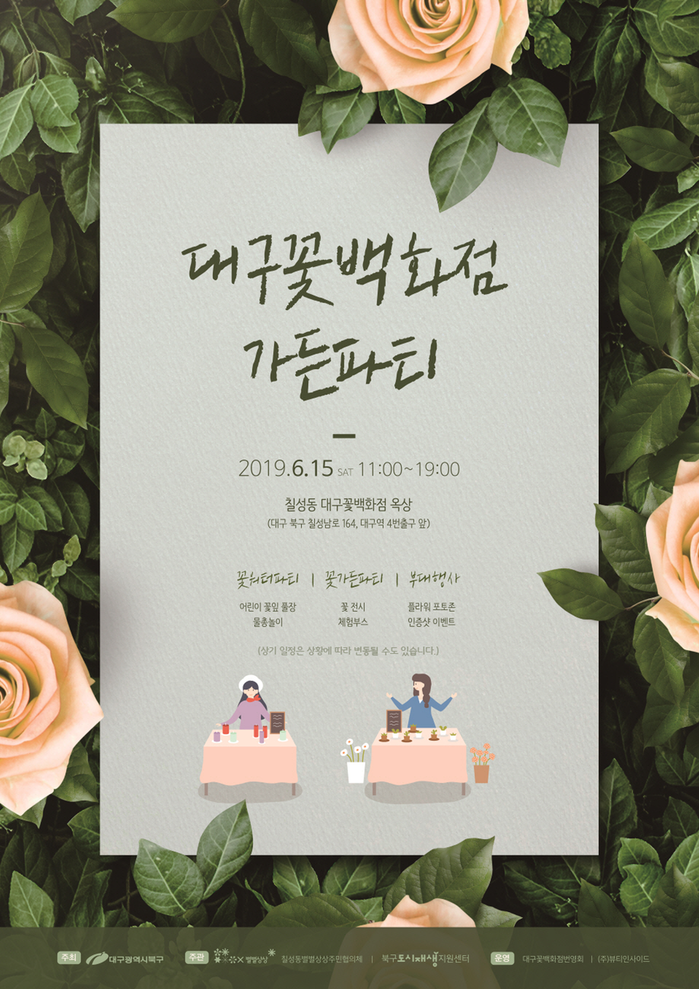 대구 꽃 백화점 가든파티 행사는 칠성동의 다양한 도시재생사업의 하나로, 일상에서 꽃에 대한 현대인의 인식 변화와 그에 따른 꽃 수요변동 흐름을 반영해 꽃 시장 상인들이 직접 기획하고 구성한 행사로서 시민들에게 꽃에 대한 접근성과 친밀성을 높여 칠성동 대구 꽃 시장을 활성화하겠다는 목적으로 이번 행사를 마련했다.