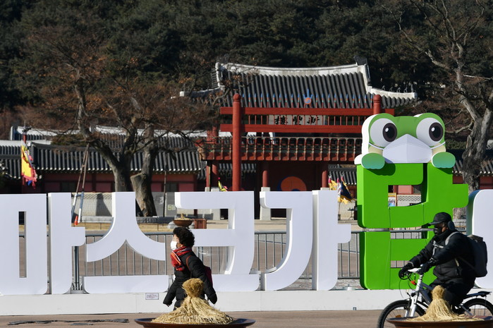 | ▲수원시 팔달구 화성행궁 앞에 설치된 ‘마스크가 답이다’ 조형물. |