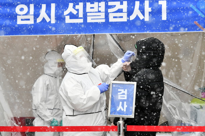 | ▲지난 1월12일 폭설에도 수원역 임시선별검사소에서 검사가 진행되고 있다. |