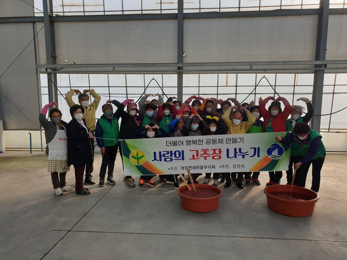 군산시 개정면은 새마을부녀회(회장 정화선)가 5일 군산농협 경제센터에서“사랑의 고추장 나누기”행사를 가졌다고 밝혔다.