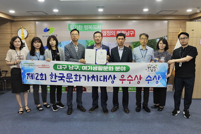 [로컬세계 박세환 기자]대구 남구는 ‘제2회 한국 문화가치대상’에서 여가생활문화 분야 우수상 수상기관으로 선정됐다고 13일 밝혔다.
