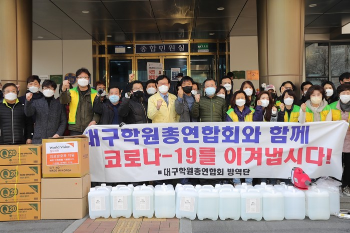 연합회 방역단은 수성구청에서 소독약, 분무기, 방역복 등을 방역물품을 지원받아 학원, 독서실, 주변 상가 등에 대한 방역 봉사활동에 나설 예정이다.