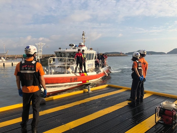 전북 군산해양경찰서(서장 서정원)는 25일 오전 5시 28분께 군산시 옥도면 선유도 북서쪽 600m 해상에서 21명(선원 2명, 낚시객 19명)이 탄 낚싯배 A호(9.77t)가 침수중이라는 신고를 접수했다고 밝혔다.