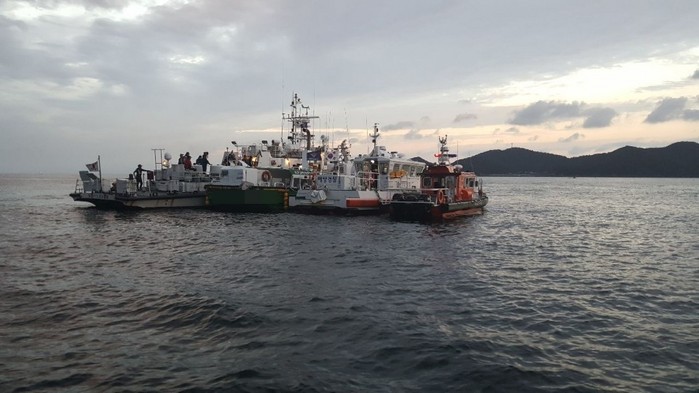 5시 34분께 현장에 도착한 경비정(P-91정)에서 낚시객 19명을 전원 구조한 후 배수펌프와 잠수펌프로 배수 작업을 실시했다.