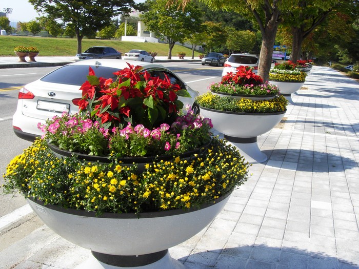 ▲강릉시 일원에 조성된 꽃 장식용 화분. |