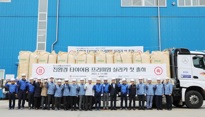 농협(회장 이성희)경제지주 계열사인 남해화학이 일본 합성실리카 종합회사인 토소실리카(TOSOH SILICA)와 합작해 설립한 토소남해실리카(TOSOH NAMHAE SILICA)가 지난 13일 전남 여수시 산업단지 내 생산 공장에서 ‘친환경 타이어용 프리미엄 실리카’를 첫 출하했다.