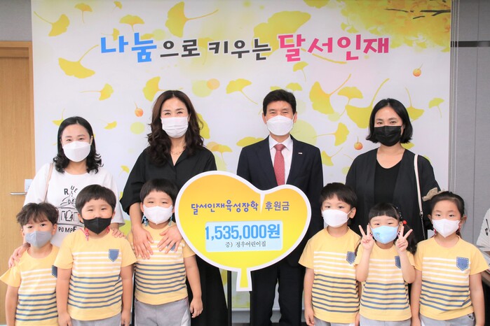 정우어린이집은 공현희 원장을 포함한 교직원 11명, 원아 정원 47명인 국공립 어린이집이다. 지난 8월 27일 어린이집에서 실시한 프리마켓 수익금과 원장 및 보육교직원들의 정성을 모아 153만5000원을 달서인재육성장학재단에 전달했다.