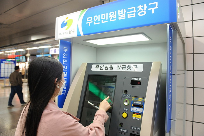 남구는 구청 종합민원실을 비롯하여 남대구세무서, 보건소 등 지역 내 총 7대의 무인민원발급기를 운영 중이다.