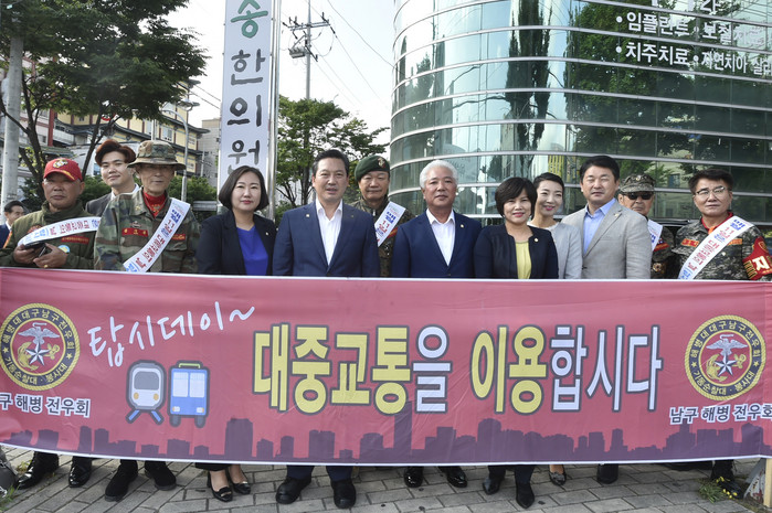 이날은 고농도 미세먼지 발생 등 환경문제 개선과 교통체증 완화를 위해 한 달에 하루 만이라도 승용차를 타지 않고 대중교통으로 출·퇴근하기 등 주민들에게 대중교통 이용의 날 동참을 적극 홍보했다.