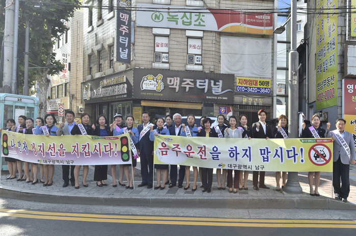 이날 '6월 대중교통 탑시Day'를 맞아 전국모범운전자연합회 대구남부지회, 대구해병대 남구지회, 남부경찰서 녹색어머니회, 안실련대구남구지회, 남부경찰서 등 민·관 합동으로 60여 명이 참여해 캠페인을 실시했다.