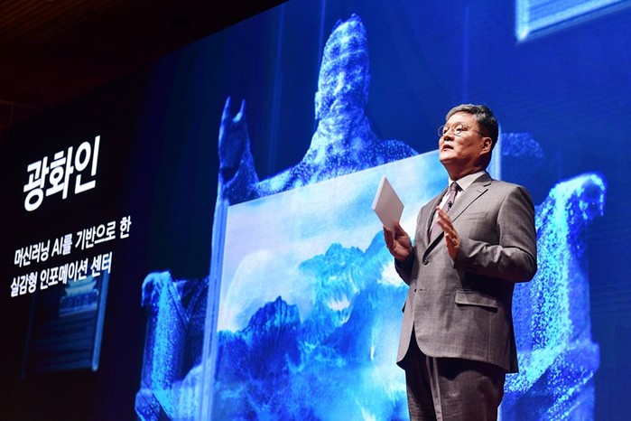 ▲콘진원 김영준 원장이 '광화시대' 프로젝트 내용을 소개하고 있다.(한국콘텐츠진흥원 제공) |