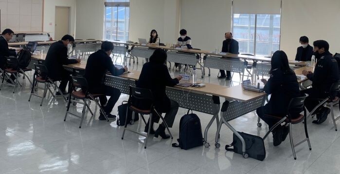 ▲ ‘부산신항 배후단지 부가물류활성화 등을 위한 제도개선 TF’ 팀원들이 지난 1일 부산항만공사 회의실에 모여 올해 첫 회의를 하고 있다. BPA 제공 |