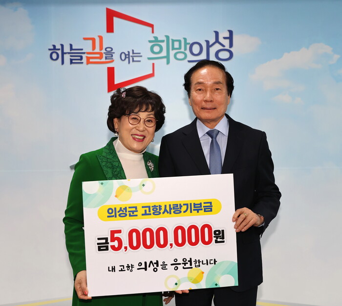 김주수 의성군수는 “고향에 보내주신 따뜻한 마음에 감사드리며 기부금이 주민 복리증진과 지역경제 활성화에 쓰이도록 최선을 다하겠다”고 전했다.