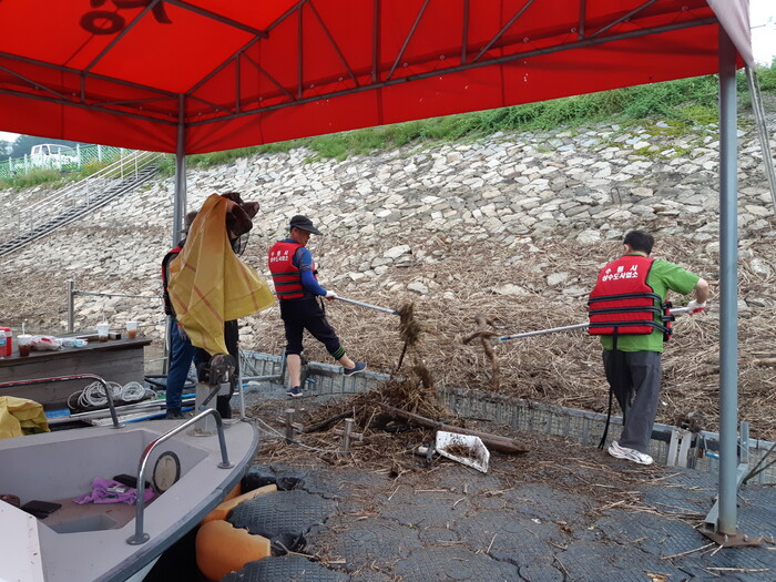 최근 태풍 힌남노로 인한 집중호우 이후 잡초·수목류·생활 쓰레기 등 많은 양의 부유물이 저수지에 유입됐다. 부유물을 방치하면 저수지 환경과 수질이 오염될 우려가 있고, 악취가 발생할 수 있다.