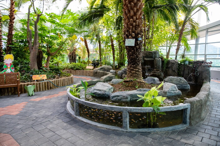 환경학습관은 열대 식물을 키우고 수족관 시설을 운영한다. 수족관에는 아로와나, 레오폴드 같은 열대 어류 17종 및 식물관에는 총 202종 식물이 있는데, 파파야나무, 바오밥나무 같은 열대 식물을 직접 관찰할 수 있다. 특히 올해 새로 단장한 유수풀 먹이주기 체험존은 어린이에게 가장 인기가 좋은 곳으로 먹이 1봉지를 무료로 수령하여 즐길 수 있다.