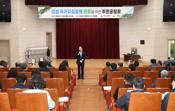 [로컬세계=박상진 기자]경북 의성군은 의성 국가지질공원 인증을 위한 주민공청회가 지난달 28일 의성군 종합복지관에서 김주수 군수를 비롯해 지역주민, 전문가 등 100여 명이 참석한 가운데 진행됐다고 2일 밝혔다.