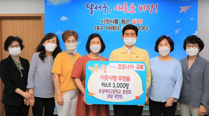 곽인희 효성여자고등학교 동창회장은 “무더위와 코로나19로 인해 힘들어 하는 소외계층에게 조금이나마 도움이 됐으면 하는 마음에 회원들의 뜻을 모았다.”며 “달서구민 모두가 코로나19를 슬기롭게 극복하기를 희망한다.”고 말했다.