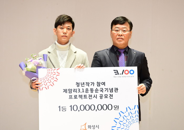 [로컬세계 고용주 기자]경기 화성시는 지난 8일 월례조회에서 3.1운동 100주년 기념 특별전 일환으로 열린 공모 ‘청년작가 참여 제암리3.1운동순국기념관 프로젝트 전시’의 당선작을 시상했다고 10일 밝혔다.