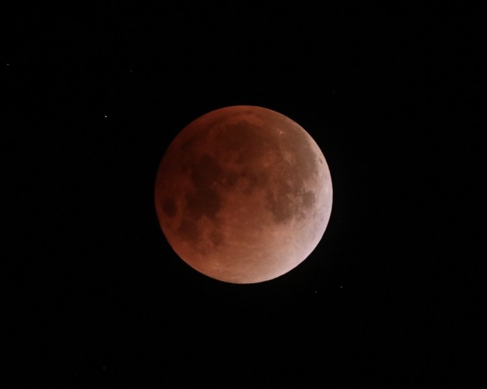 청양군에 따르면 칠갑산천문대에 밤 9시 40분쯤 구름이 걷히기 시작하면서 개기월식으로 인해 어두운 붉은빛을 띠는 선명한 ‘블러드 문’ 현상을 관측할 수 있었다.