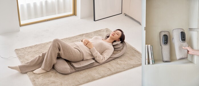 무선 종아리 마사지기 ‘코지스키니’는 강력한 공기압 기술과 4개의 에어셀로 뭉친 종아리 부위 근육을 집중적으로 풀어주는 제품이다. 슬림, 밸런스, 딥 등 3가지 자동 모드를 갖춰 원하는 모드로 마사지를 받을 수 있으며 온열과 에어 강도를 각 3단계로 조절할 수 있다. 사용 시작 후 15분 뒤면 자동으로 전원이 종료되는 스마트 안심 타이머 기능으로 소비자 안전성도 높였다.