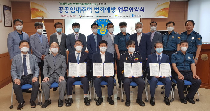 [로컬세계 박세환 기자]대구 달서구는 지난 24일 달서경찰서, LH대구경북지역본부, 대구도시공사와 범죄로부터 안전한 주거환경 조성을 위한 ‘공공임대주택 범죄예방 업무협약’을 체결했다고 25일 밝혔다.