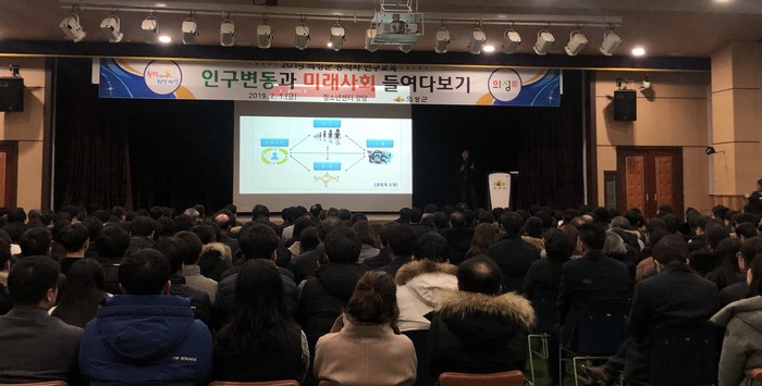 이번 교육은 공직자 300여 명이 참석한 가운데 ‘인구변동과 미래사회 들여다보기’라는 부제로 한국인구학회 회장, 한국보건사회학회 이사직을 역임하고 현재 의성군 인구증가 대책 추진협의회의 부회장을 맡고 있는 영남대 김한곤 교수가 강연했다.