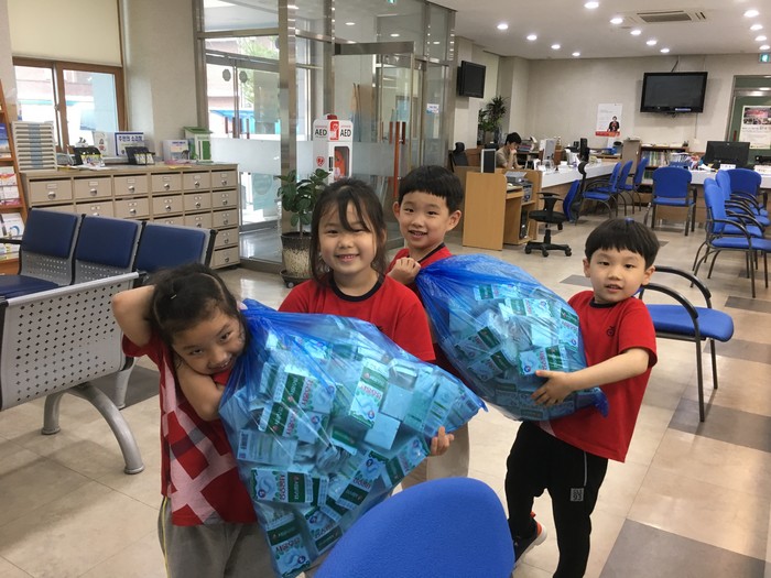 지난달 남원시 참사랑유치원 아이들이 직접 우유팩을 가져와 화장지를 교환하면서 해당 동 주민센터 직원과 인근 주민들에게 훈훈함을 전달했다.