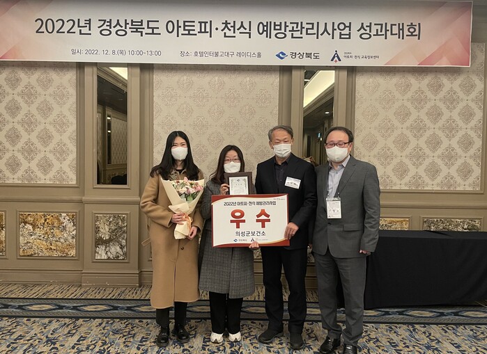 [로컬세계=박상진 기자]경북 의성군은 지난 8일 대구에서 열린 경상북도와 경상북도 아토피.천식 교육정보센터가 주최한 2022년 아토피·천식예방관리사업 성과대회에서 기관 우수상을 수상했다고 12일 밝혔다.