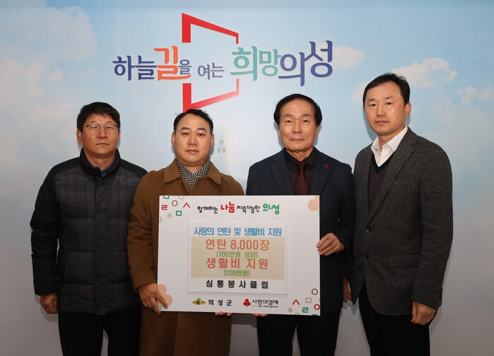 [로컬세계=박상진 기자]경북 의성군(군수 김주수)은 심통봉사클럽이 지난 25일 연말을 맞아 의성군 비안면 저소득층 7가구에 연탄 2000장과 생활비 200만원을 지원했다고 27일 밝혔다.