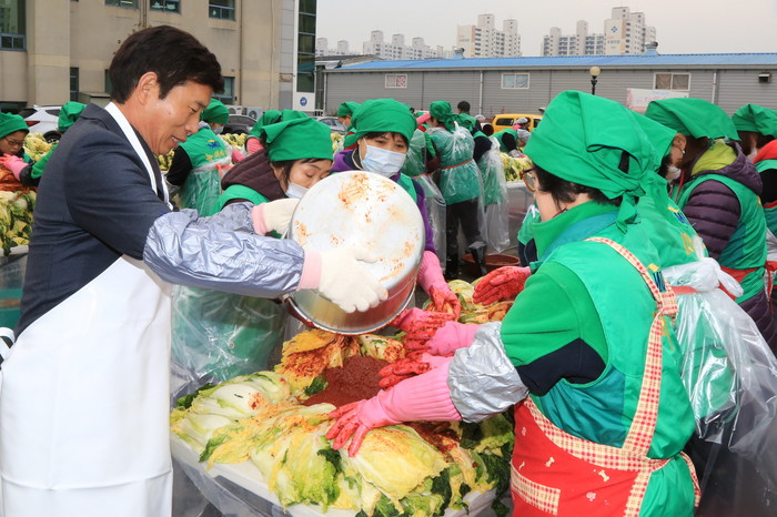더불어 살아가는 지역공동체문화 조성을 위해 배추 3800포기와 무 1200개로 김치를 직접 담근 후 동행정복지센터 및 기관을 통해 1300여 곳에 전달한다.
