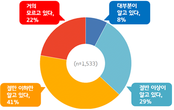 ‘대부분 알고 있거나’(8%), ‘절반 이상이 알고 있다’(29%)는 답변은 37%로 낮았다.