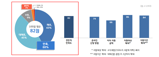 이와 함께 온라인 신청방법(79점)과 이자 지원 금액(66점)에 대한 만족도도 높았다.