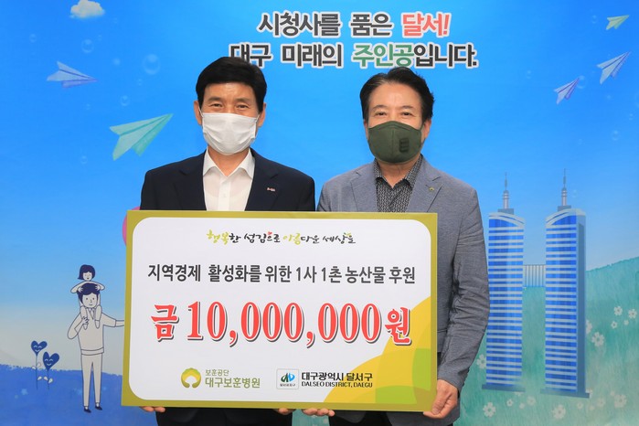 이태훈 달서구청장은 “코로나19로 인해 힘든 생활을 하고 있는 이웃을 위해 지원해 주신 데 대해 깊은 감사를 드린다”며 “코로나19를 극복하고 지역경제 활성화와 취약계층의 어려움을 완화하는 데 최선을 다하겠다”고 말했다.