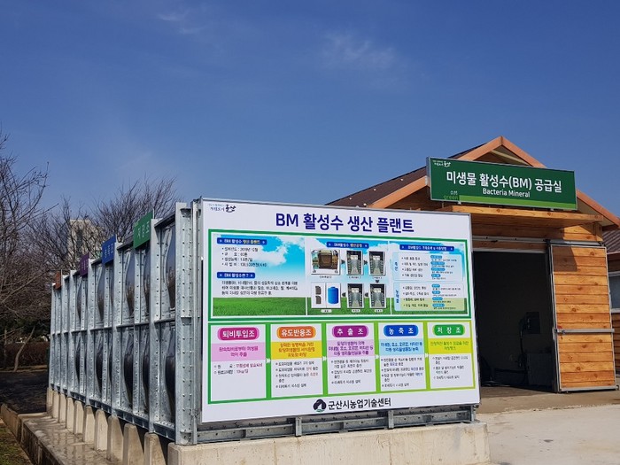 군산시농업기술센터는 친환경농업 확대를 위해 2억원의 시비를 들여 BM활성수 생산시설을 마련하고 자체 생산한 친환경 미생물제인 BM(Bacteria Mineral)활성수를 오는 3월부터 농가에 새롭게 공급할 예정이다.